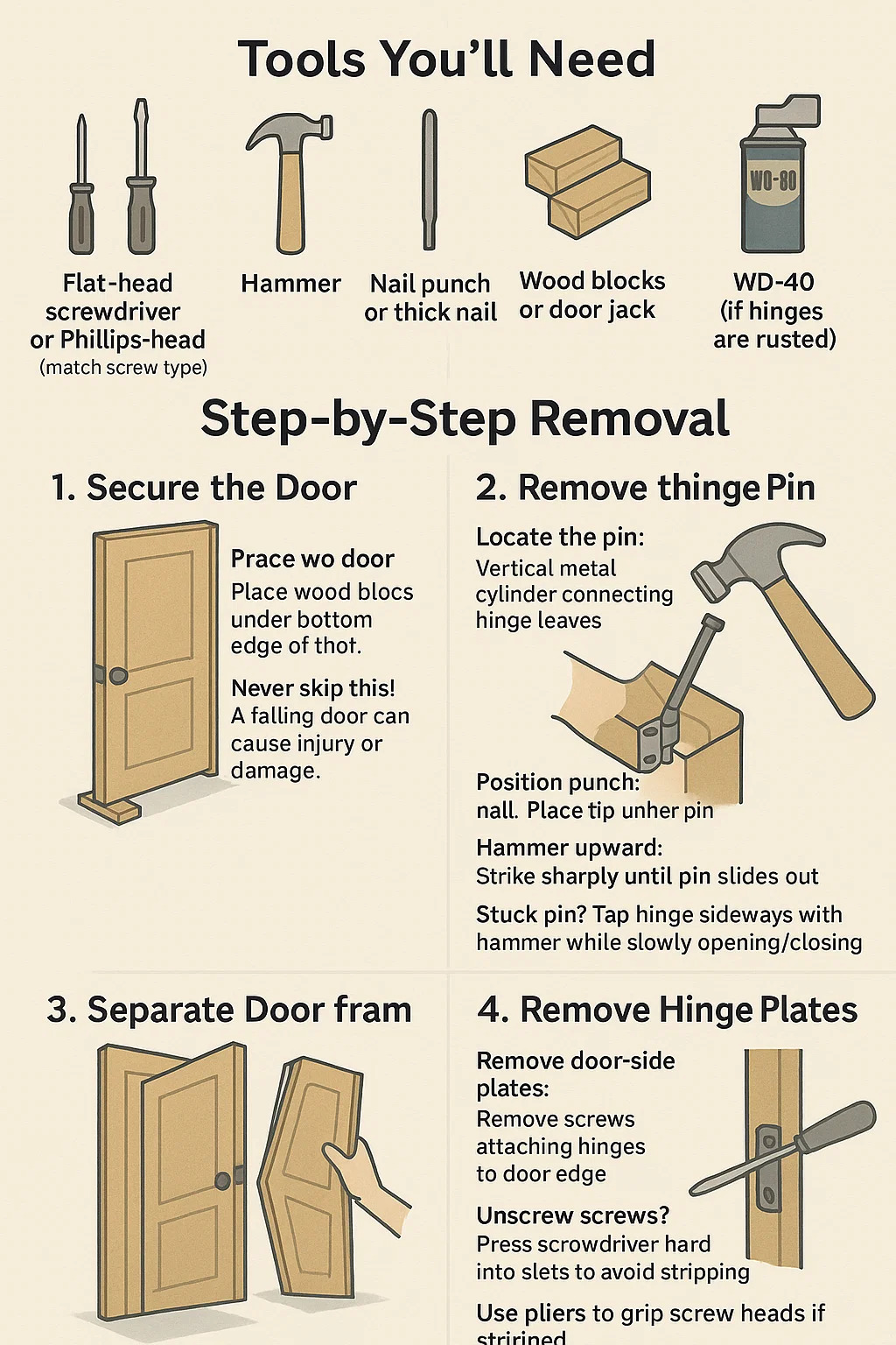 Stuck pin? Tap hinge sideways with hammer while slowly opening/closing the door.
