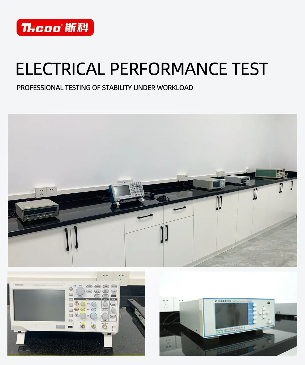 The electrical performance test is very important in the production process. Through the test, the performance stability of the product under various working loads is confirmed. The goal is to obtain the changes of various performance indicators of the product during the load change process. The Thcoo Electric Performance Laboratory has complete test and detection equipment and professional engineers, which can comprehensively analyze the electrical performance of products and predict bottlenecks.