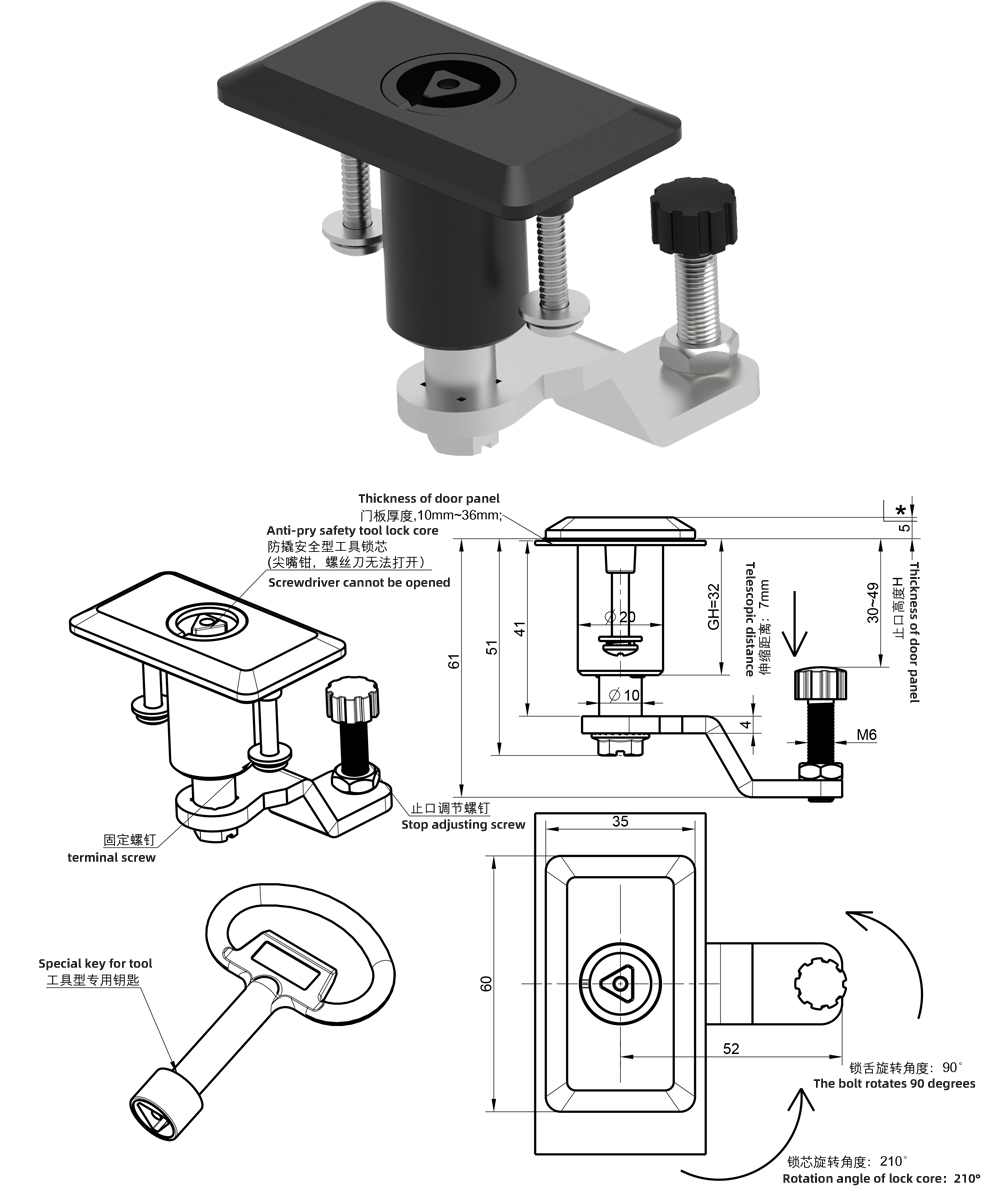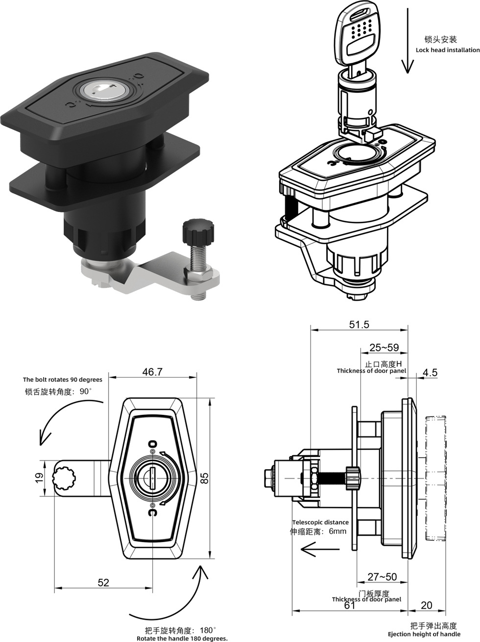 - Adopt anti prying safety type lock cylinder, professional anti prying design