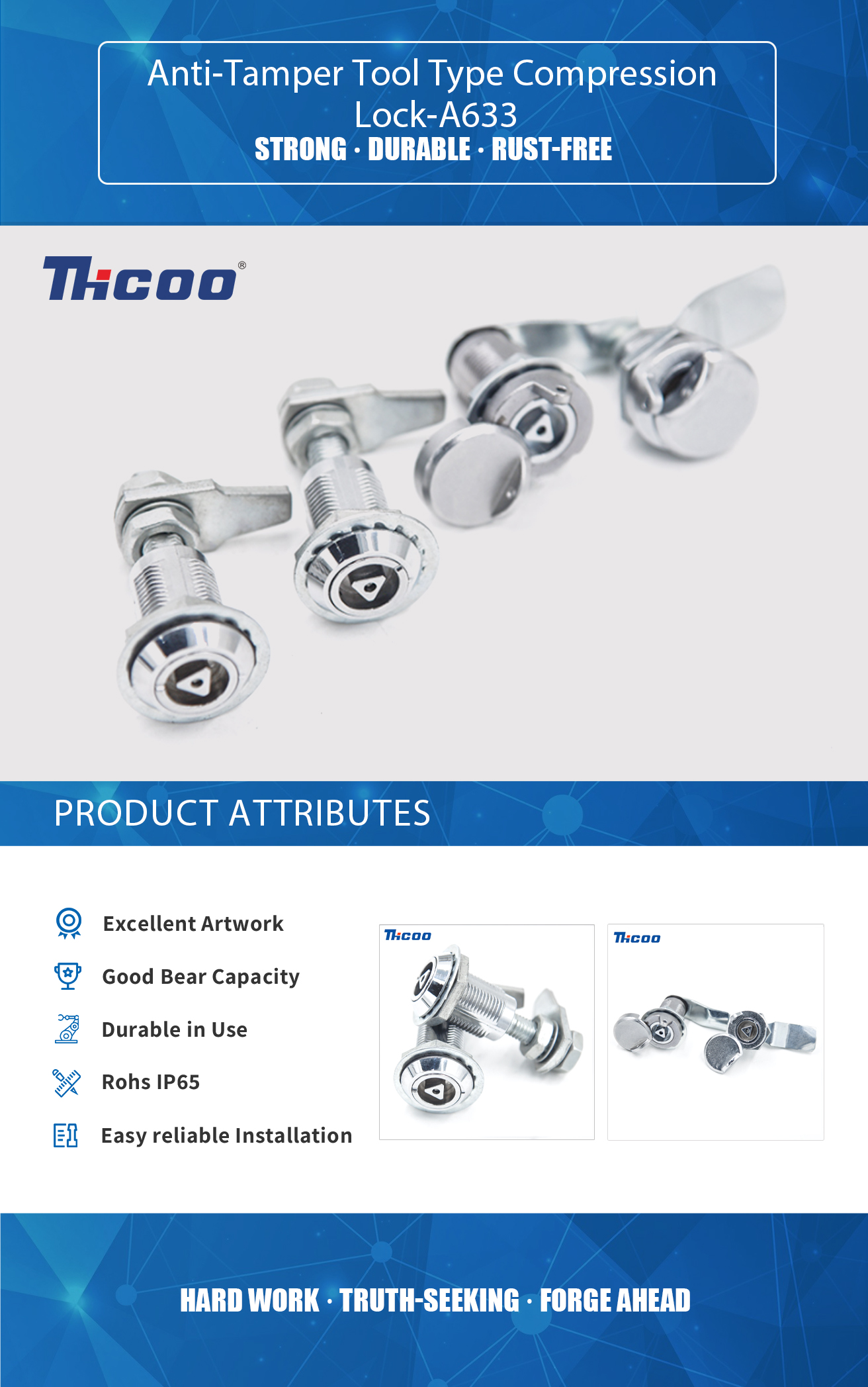 Founded in 2009, As China Anti-Tamper Tool Type Compression Lock-A633 Suppliers ,THCOO Corporation has been operating with ingenuity for 13 years. It is a high-tech enterprise integrating independent research and development, production, sales and service. It is a leading domestic hardware intelligent integrated system solution provider.
