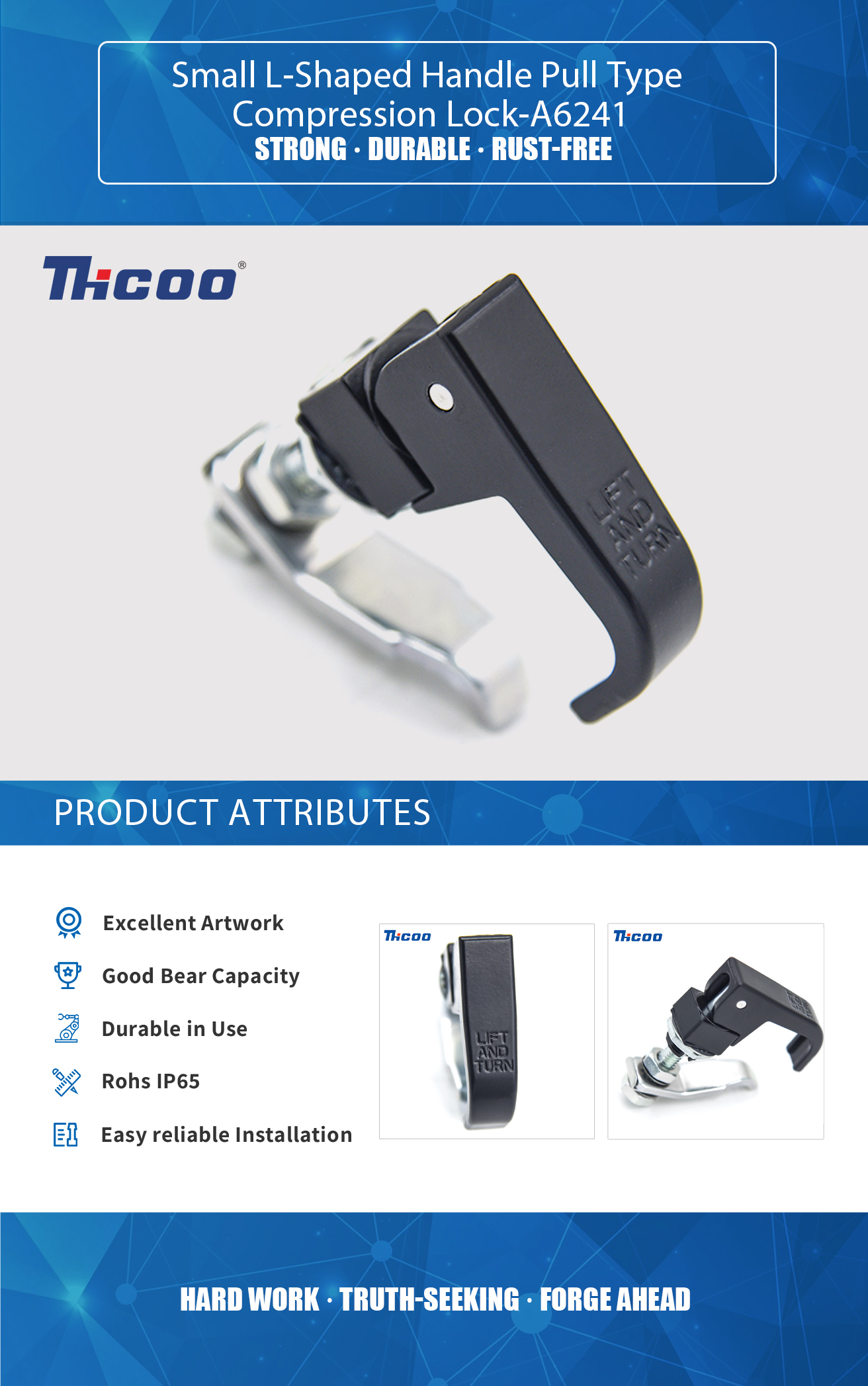 Founded in 2009, As China Small L-Shaped Handle Pull Type Compression Lock-A6241 Suppliers ,THCOO Corporation has been operating with ingenuity for 13 years. It is a high-tech enterprise integrating independent research and development, production, sales and service. It is a leading domestic hardware intelligent integrated system solution provider.