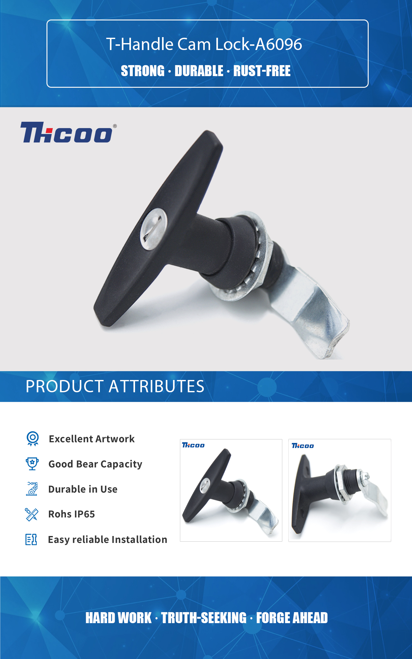 Founded in 2009, As China T-Handle Cam Lock-A6096 Suppliers ,THCOO Corporation has been operating with ingenuity for 13 years. It is a high-tech enterprise integrating independent research and development, production, sales and service. It is a leading domestic hardware intelligent integrated system solution provider.
