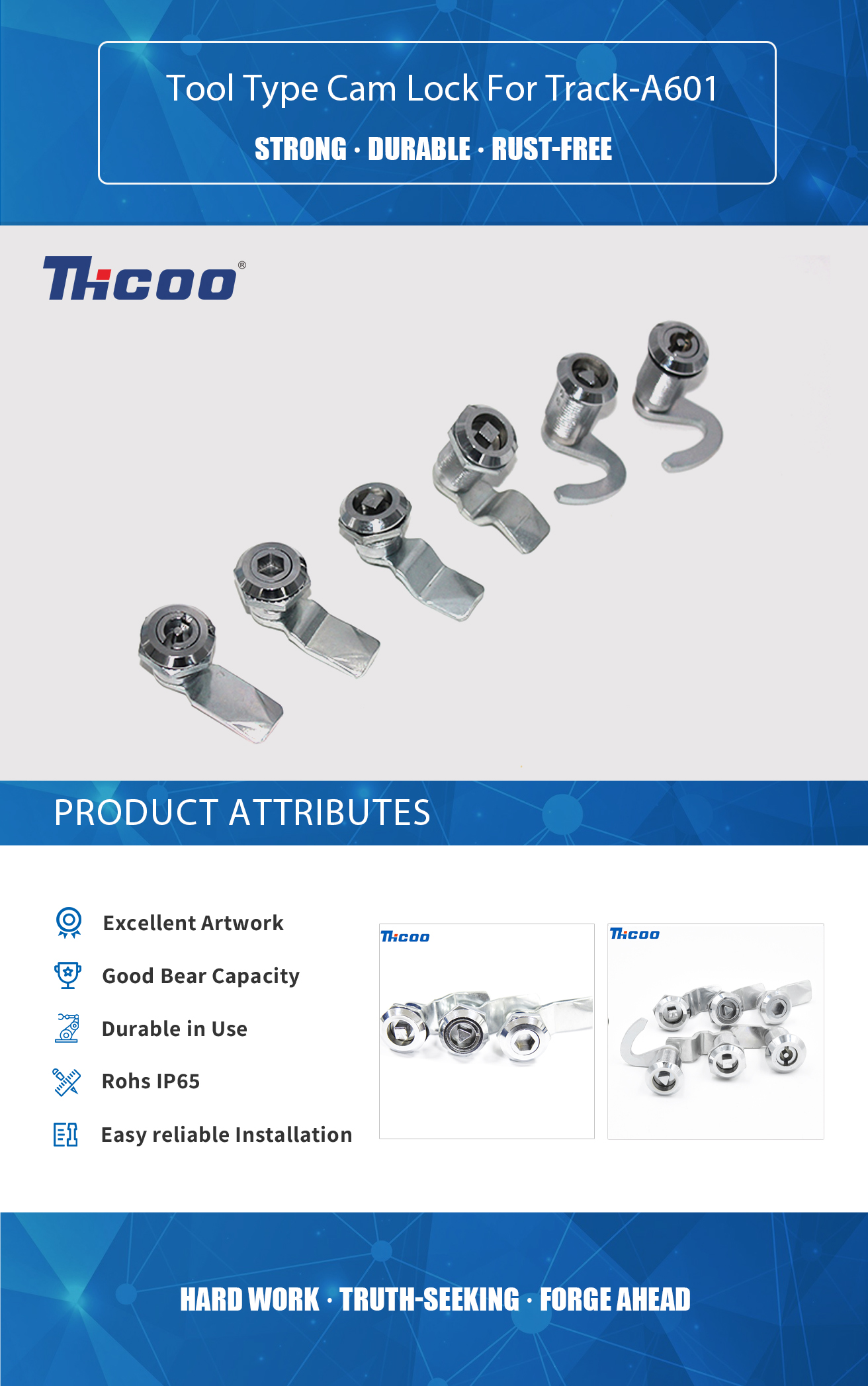 Founded in 2009, As China Tool Type Cam Lock For Track-A601 Suppliers ,THCOO Corporation has been operating with ingenuity for 13 years. It is a high-tech enterprise integrating independent research and development, production, sales and service. It is a leading domestic hardware intelligent integrated system solution provider.
