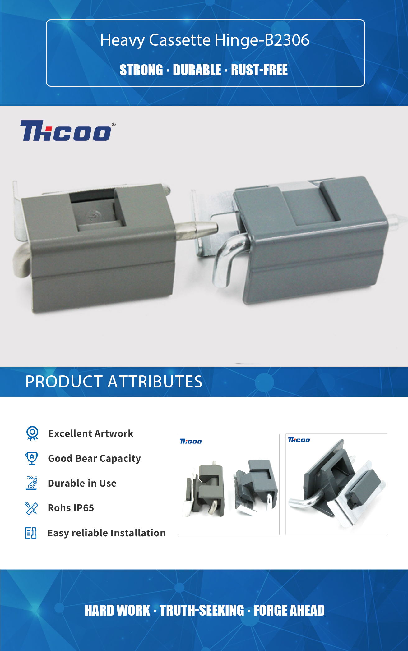 Founded in 2009, As China Heavy Cassette Hinge-B2306 Suppliers ,THCOO Corporation has been operating with ingenuity for 13 years. It is a high-tech enterprise integrating independent research and development, production, sales and service. It is a leading domestic hardware intelligent integrated system solution provider.