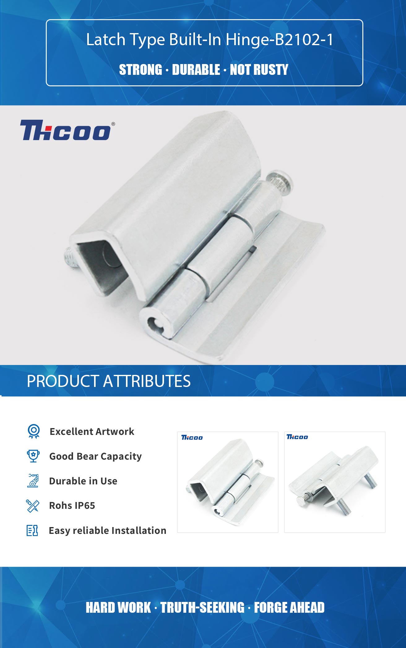 Founded in 2009, As China Latch Type Built-In Hinge-B2102-1 Suppliers ,THCOO Corporation has been operating with ingenuity for 13 years. It is a high-tech enterprise integrating independent research and development, production, sales and service. It is a leading domestic hardware intelligent integrated system solution provider.