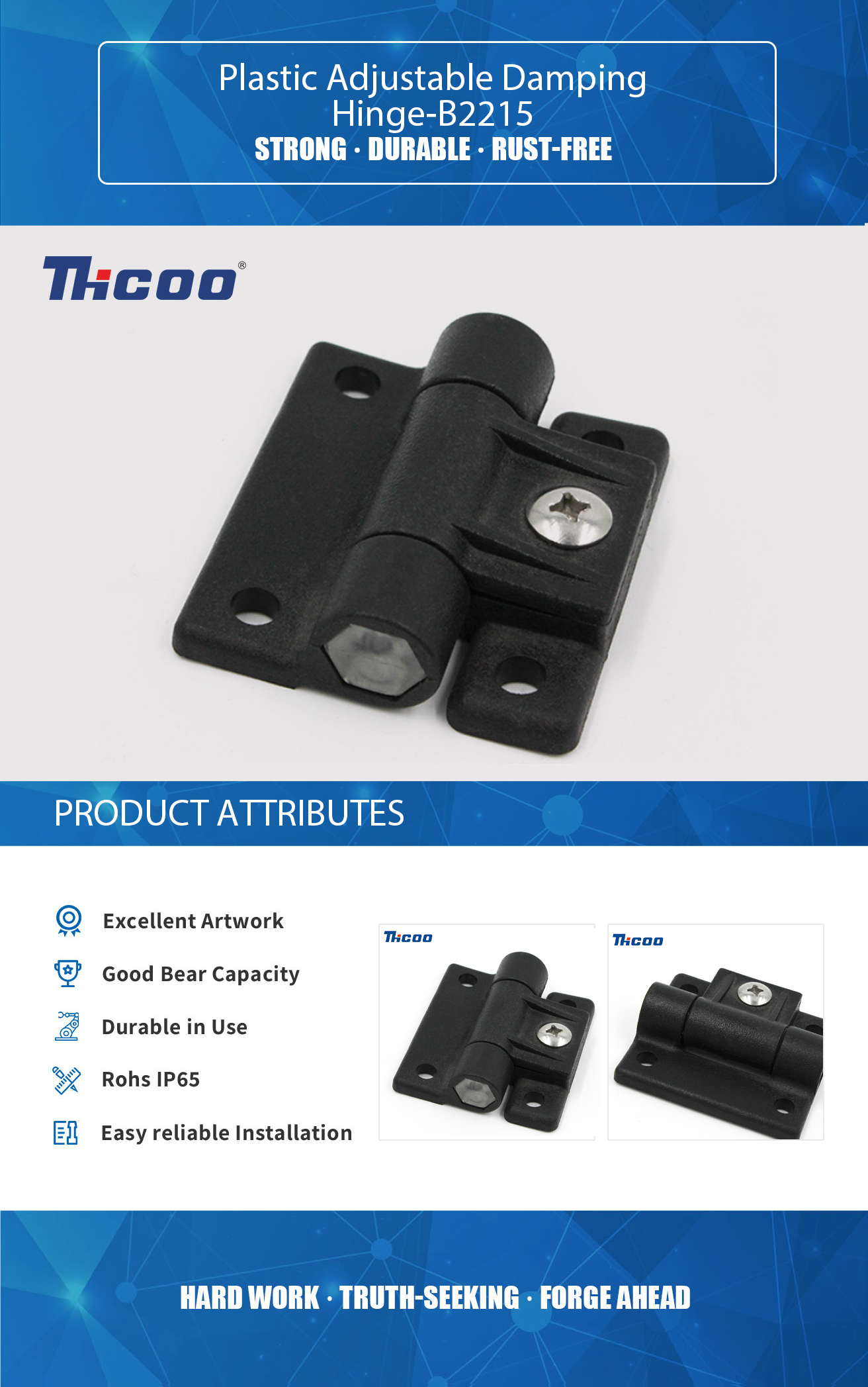 Founded in 2009, As China Plastic Adjustable Damping Hinge-B2215 Suppliers ,THCOO Corporation has been operating with ingenuity for 13 years. It is a high-tech enterprise integrating independent research and development, production, sales and service. It is a leading domestic hardware intelligent integrated system solution provider.