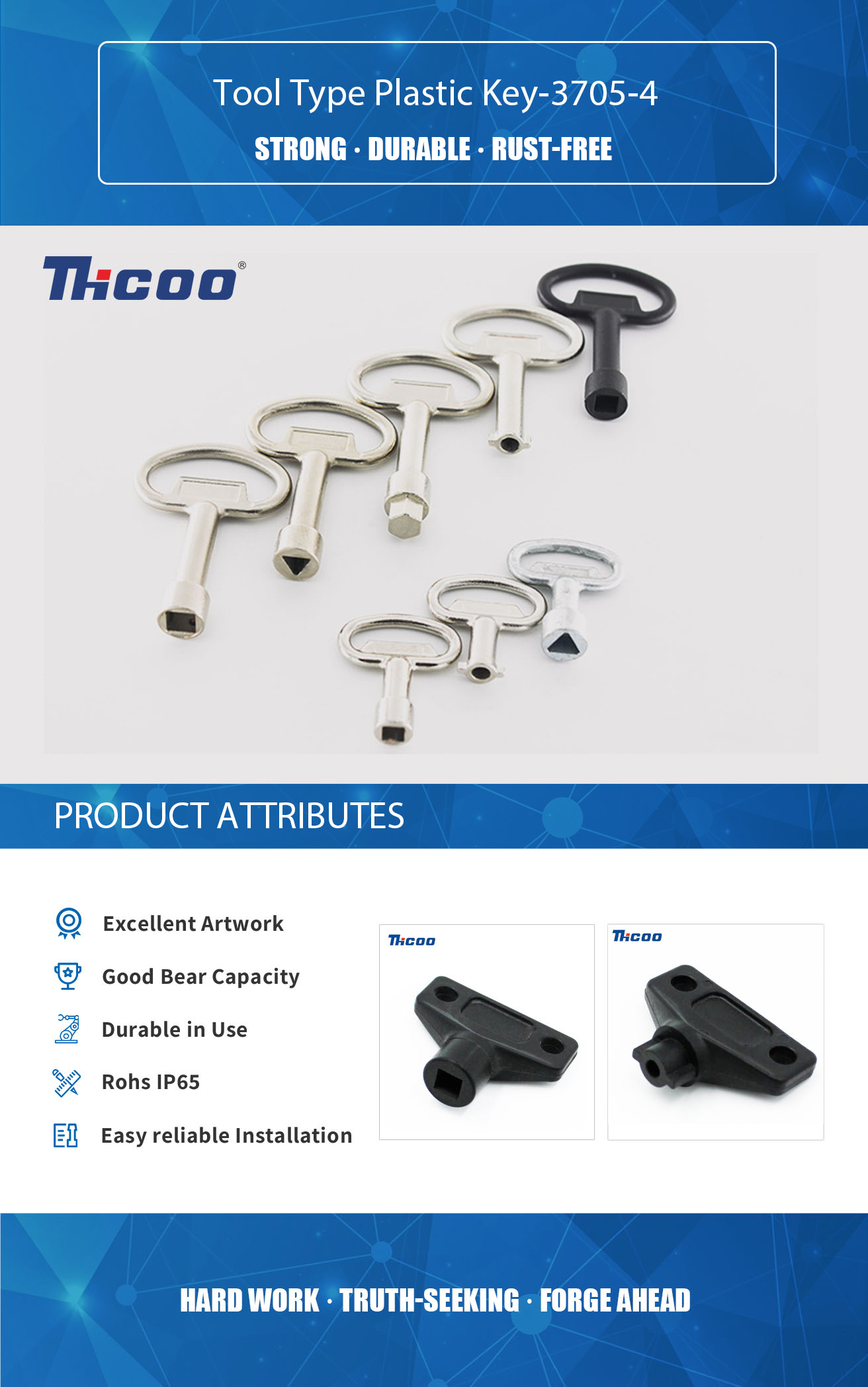 Founded in 2009, As China Tool Type Plastic Key-3705-4 Suppliers ,THCOO Corporation has been operating with ingenuity for 13 years. It is a high-tech enterprise integrating independent research and development, production, sales and service. It is a leading domestic hardware intelligent integrated system solution provider.