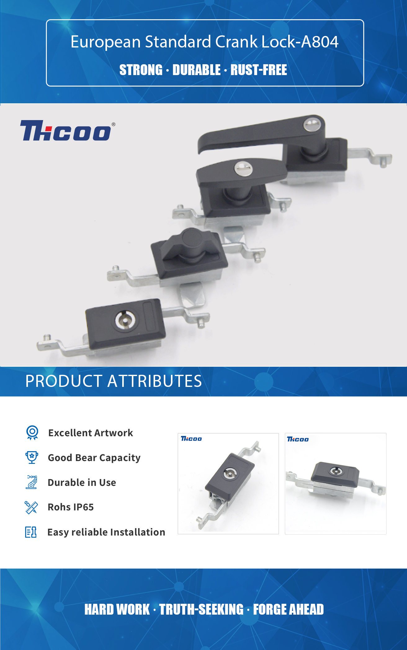 Founded in 2009, As China European Standard Crank Lock-A804 Suppliers ,THCOO Corporation has been operating with ingenuity for 13 years. It is a high-tech enterprise integrating independent research and development, production, sales and service. It is a leading domestic hardware intelligent integrated system solution provider.