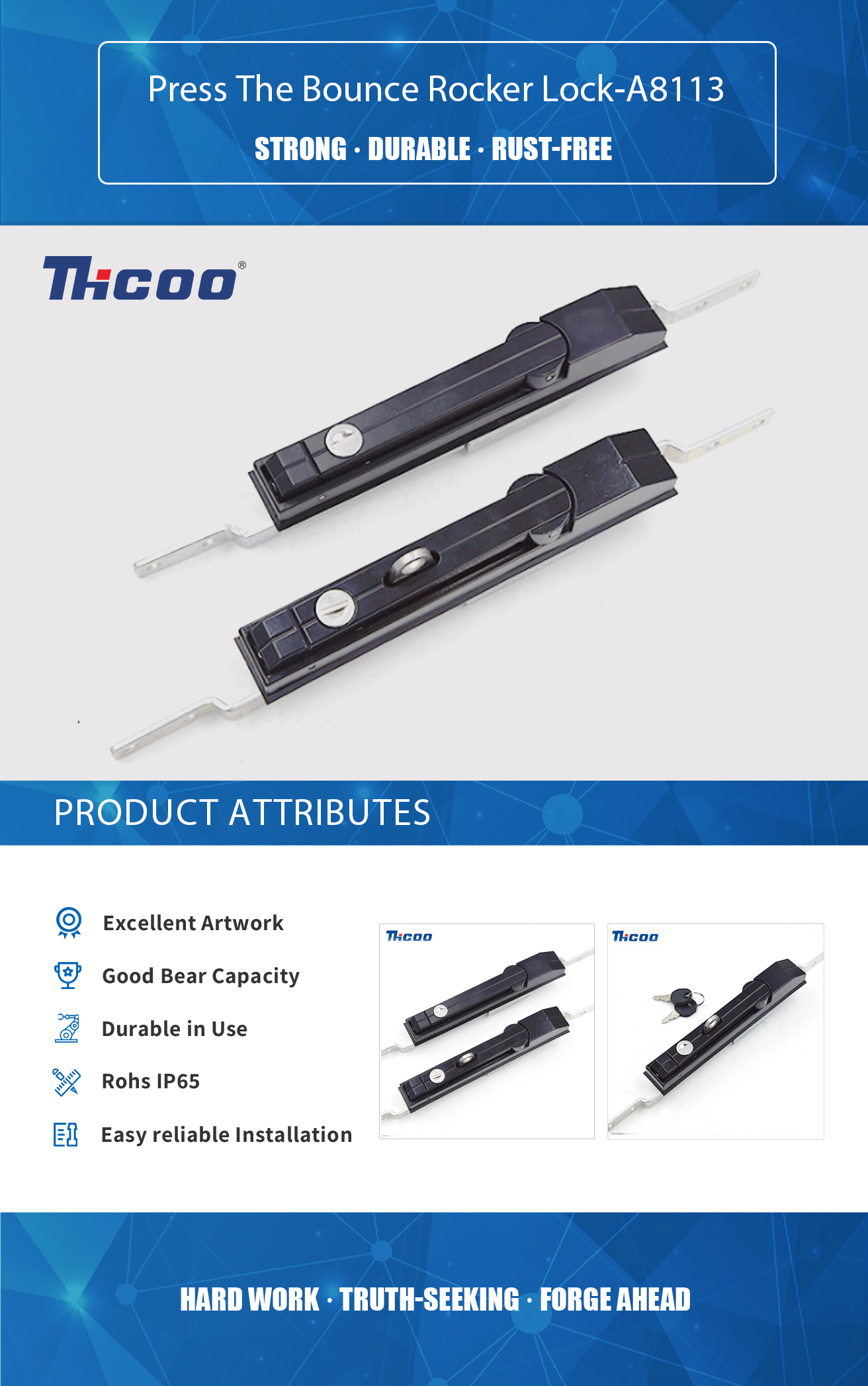 Founded in 2009, As China Press The Bounce Rocker Lock-A8113 Suppliers ,THCOO Corporation has been operating with ingenuity for 13 years. It is a high-tech enterprise integrating independent research and development, production, sales and service. It is a leading domestic hardware intelligent integrated system solution provider.