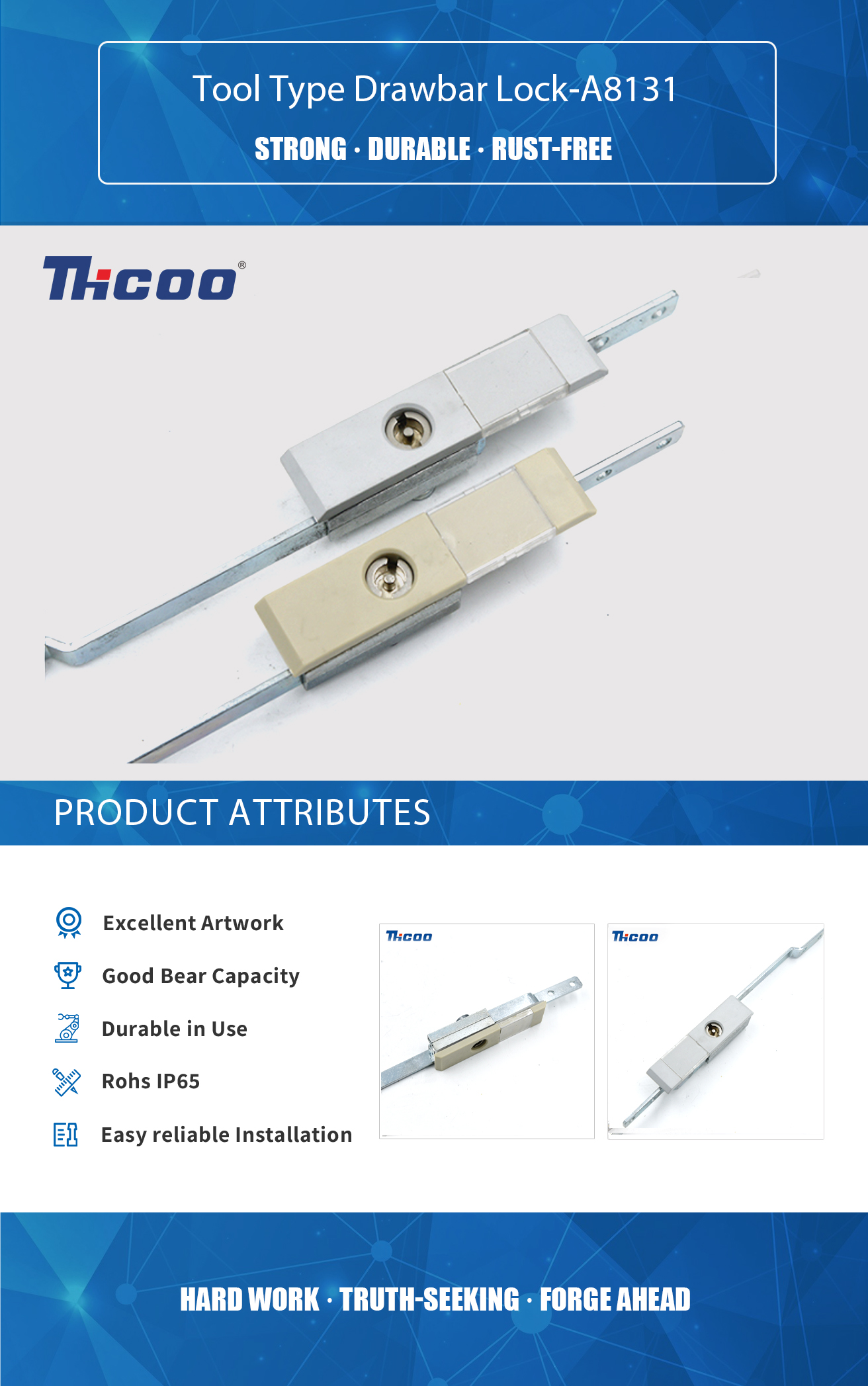 Founded in 2009, As China Tool Type Drawbar Lock-A8131 Suppliers ,THCOO Corporation has been operating with ingenuity for 13 years. It is a high-tech enterprise integrating independent research and development, production, sales and service. It is a leading domestic hardware intelligent integrated system solution provider.